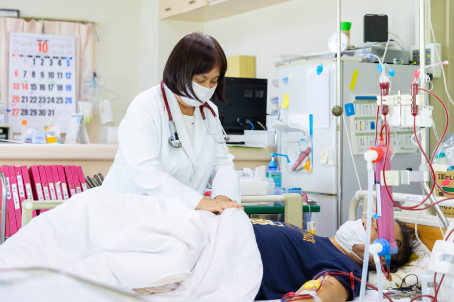 人工透析(透析療法)とは、腎臓の働きを人工的に補う治療法です。病気などの影響で正常に機能しなくなった腎臓の代わりに、血液中の老廃物や余分な水分を取り除きます。当院では、月・水・金曜日に午前・午後・夜間で行なっております。